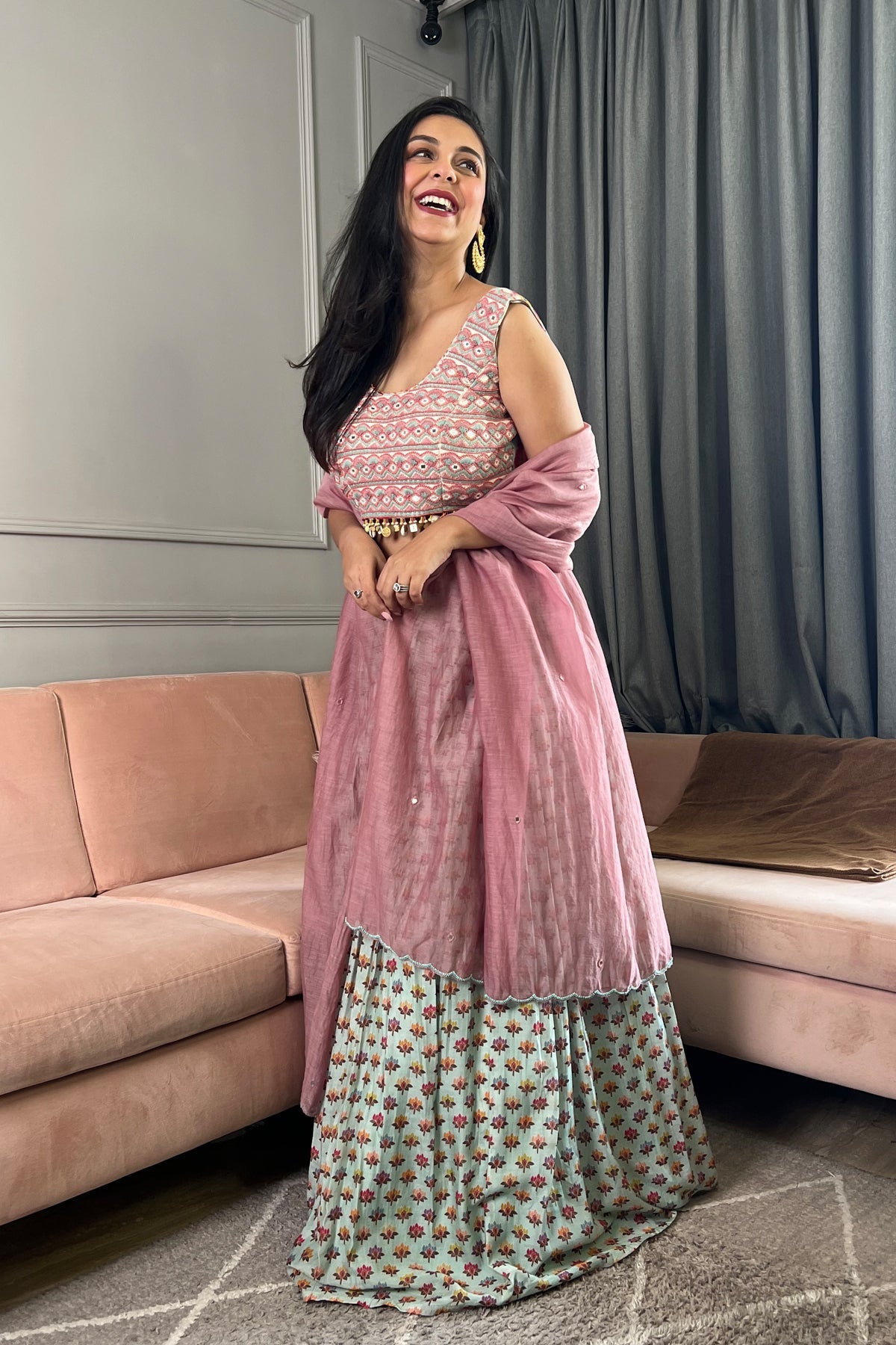 MOSS GREEN CHANDERI RAAS GHARARA SET